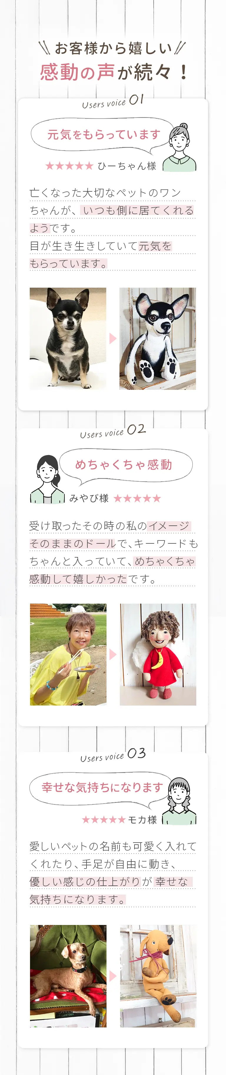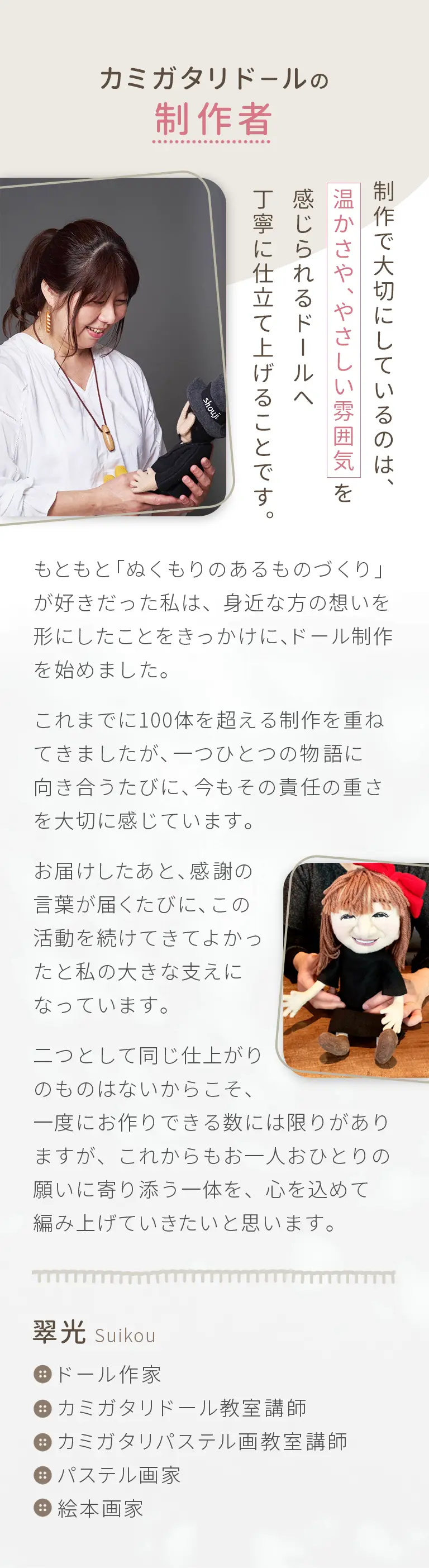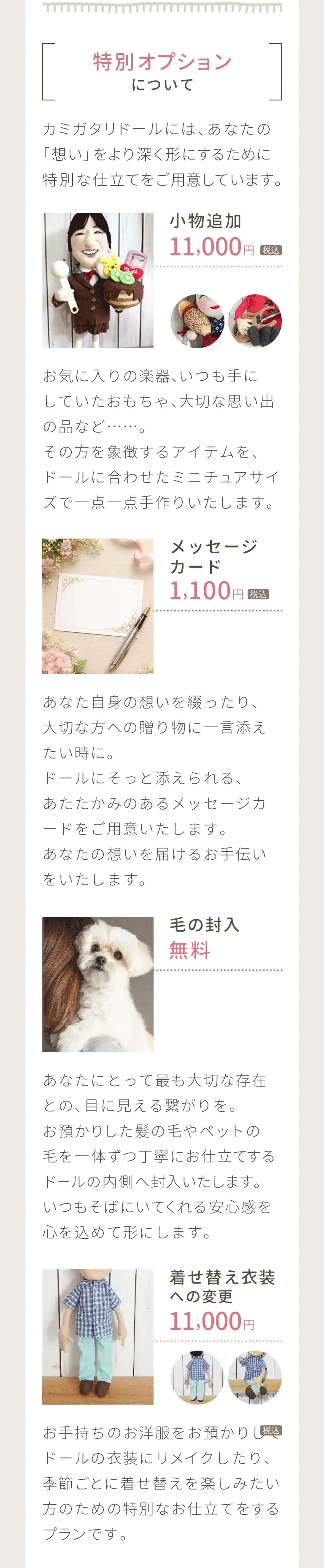 完成したドールをお受け取りいただいた後、 事前にお伺いしていた内容と比べて、明らかなイメージのズレがあると感じられた場合は、商品到着後7日以内にLINEにてご連絡ください。 内容を確認のうえ、全額返金にて対応いたします。※返金対応となった場合、商品の返送は不要です。
